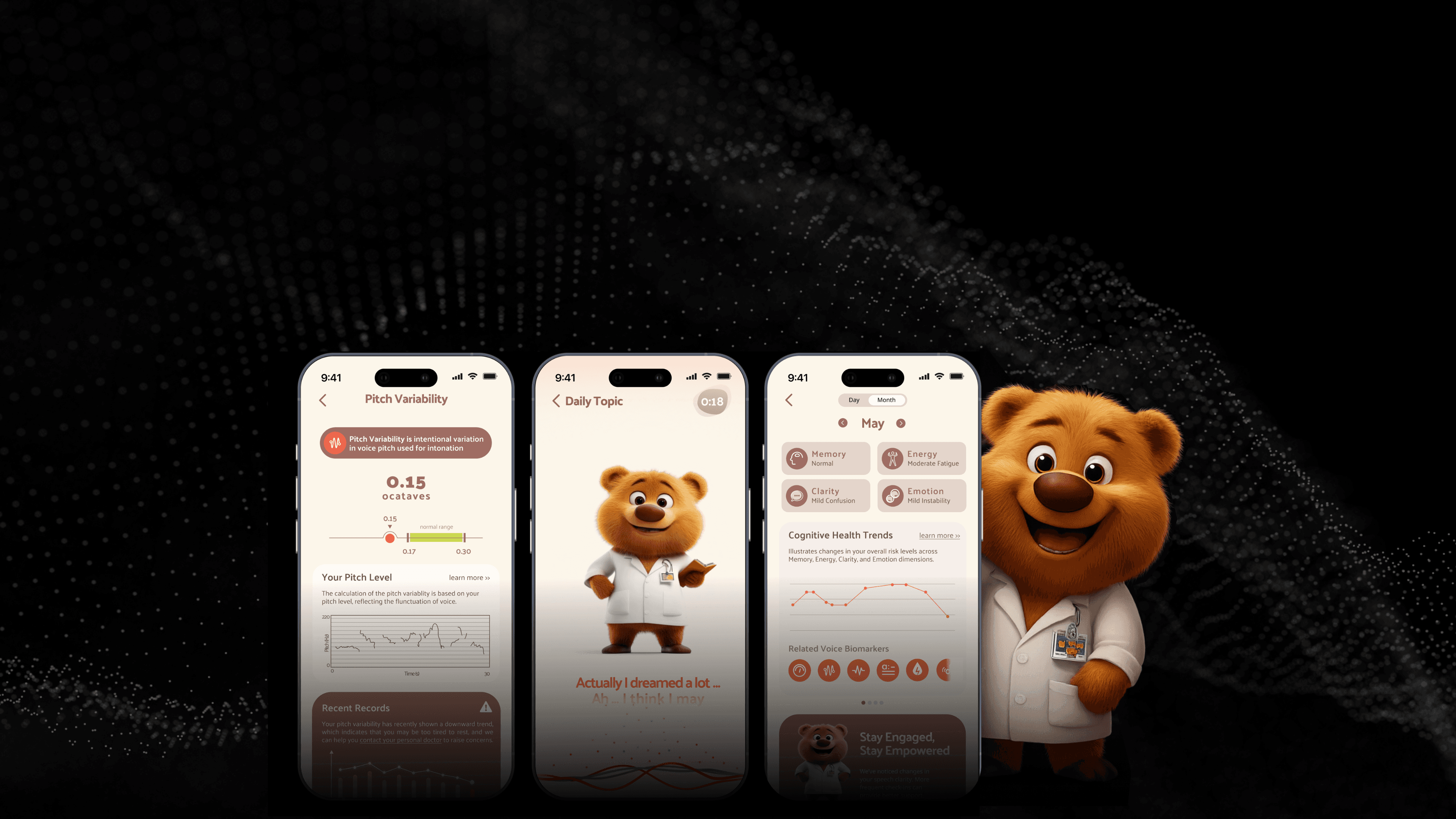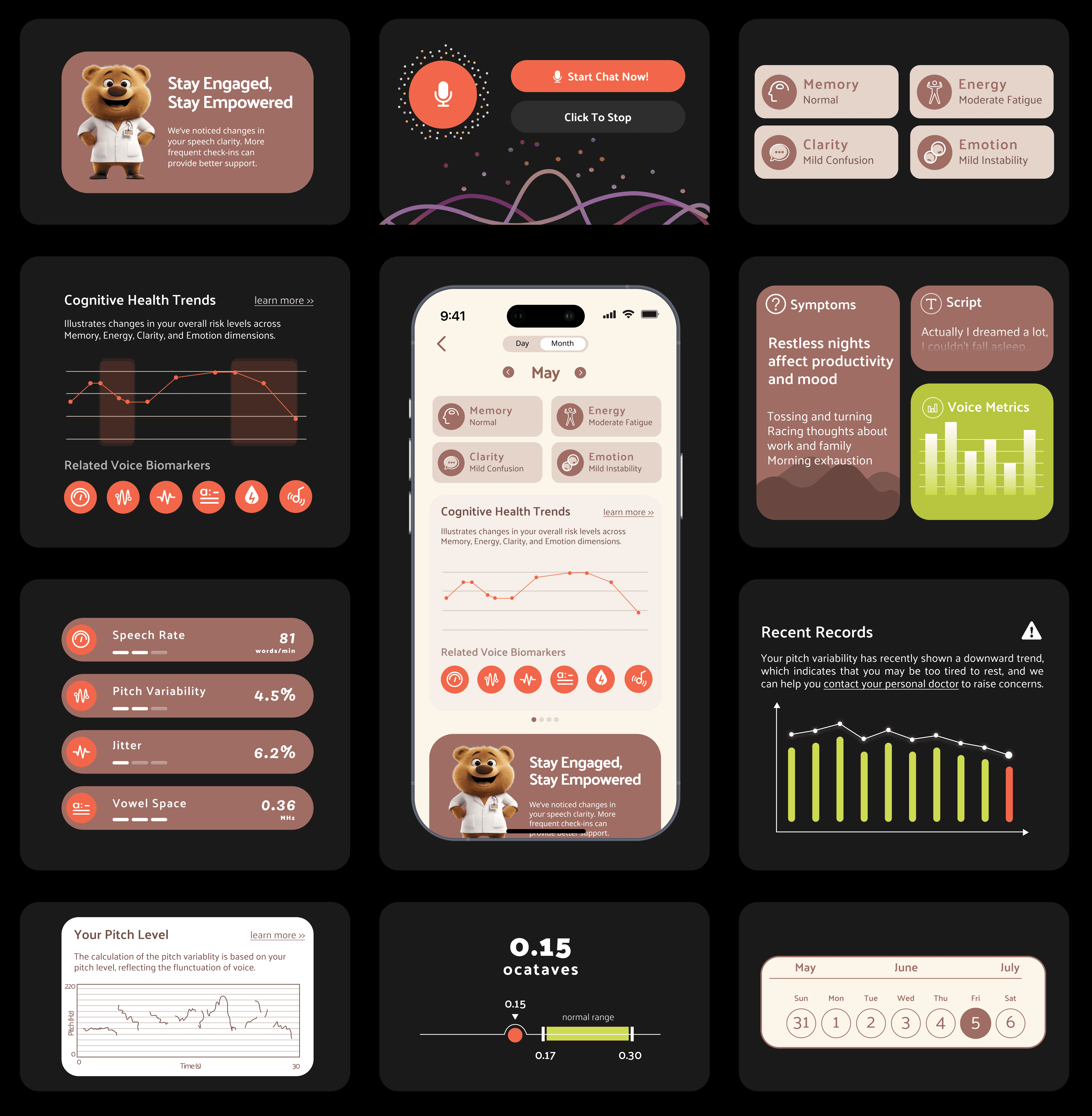 Designed clear flows — onboarding, consent, daily voice check-ins, report viewing — to lower barriers and build trust.