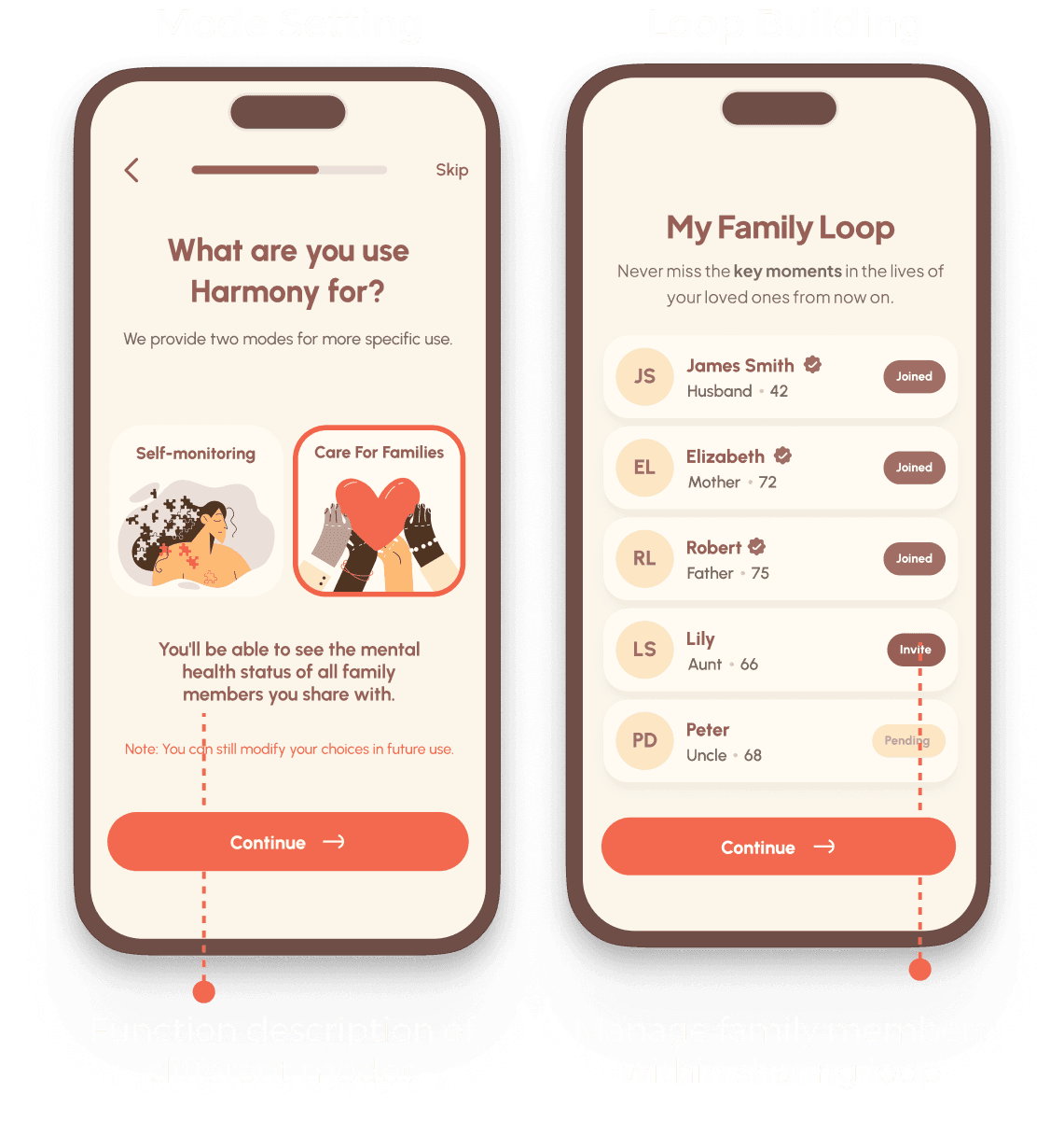 Unclear information presentation led to confusion about data boundaries and control. Caregivers were unsure what they could access, while users worried about oversharing.