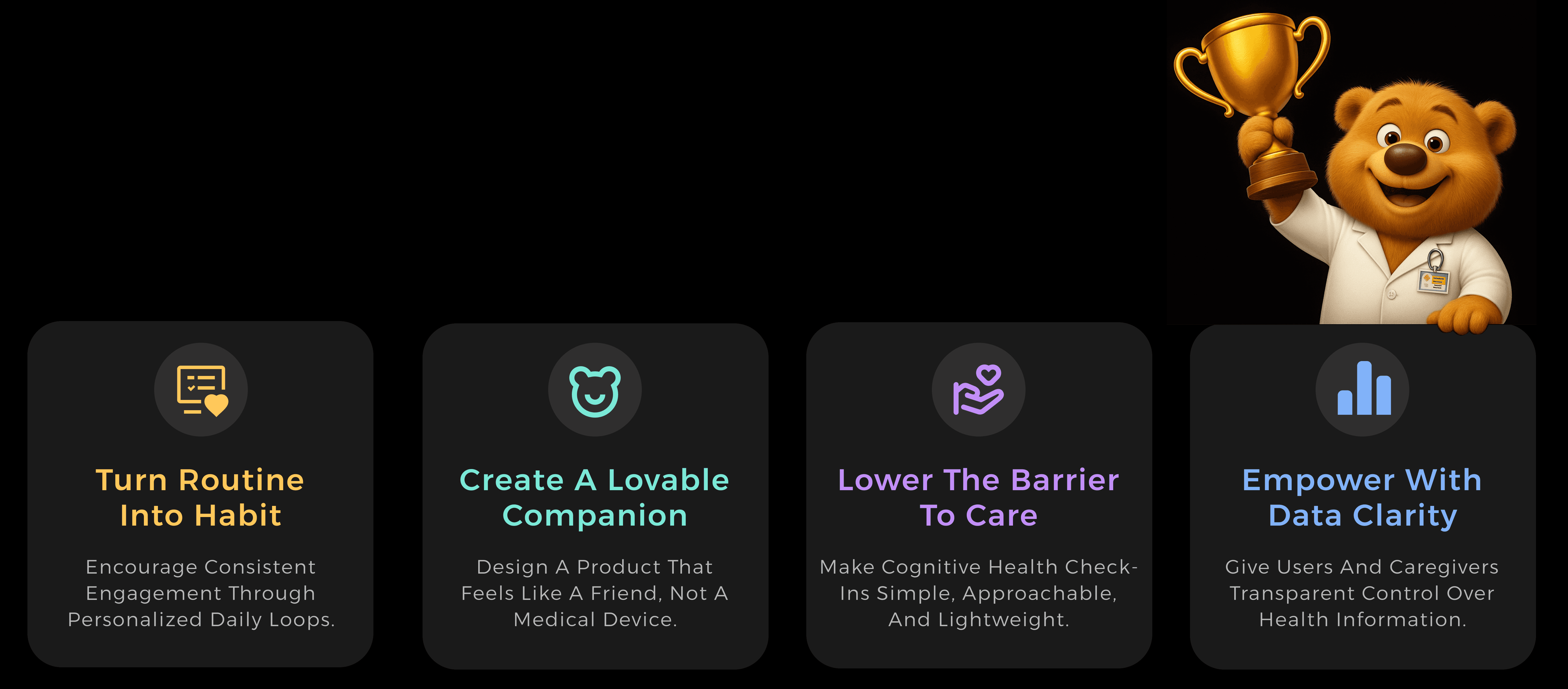 I tested the prototype with over 10 participants at a public pitch event. This group included caregivers, middle-aged adults, and medical stakeholders. Instead of just observing usability, I wanted to understand their emotional reactions to this new kind of health interaction.