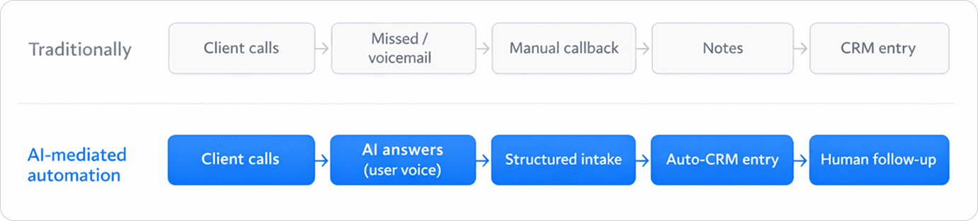 Transforming relationship-driven client intake into AI-mediated automation is less a technical challenge than a trust and behavior shift. Because the agent speaks as them, adoption depends on whether it feels like trusted delegation rather than loss of control.